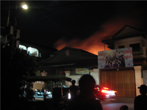 នៅវេលាម៉ោង១១និង៣៥នាទីអាធ្រាតថ្ងៃទី១៥ធ្នូឆ្នាំ២០១១ ឃ្លាំងស្តុកខោអាវជជុសនិងផ្ទះប្រជាពលរដ្ឋ ត្រូវបានអគ្គីភ័យឆេះ យ៉ាងសន្ធោសន្ធៅ នៅខាងក្រោយមន្ទីរពេទ្យ កម្ពុជាមិត្ត