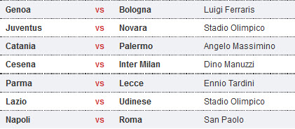 តារាងការប្រកួតបាល់ទាត់អ៊ីតាលី Serie A ថ្ងៃសៅរ ទី១៧ នឹងថ្ងៃអាទិត្យ ទី១៨ ខែធ្នូ ឆ្នាំ២០១១