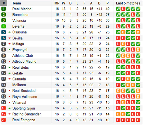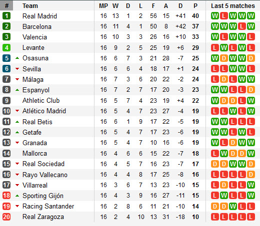 តារាងលំដាប់ពិន្ទុក្របខណ្ឌ Spain La Liga