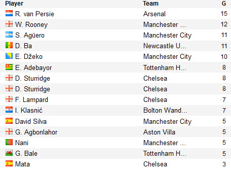 តារាង Top Scorers ក្នុងក្របខណ្ឌបាល់ទាត់ English Premier League