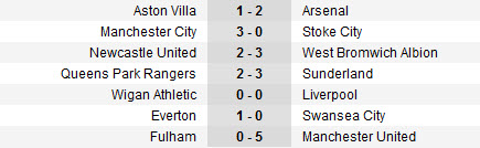 លទ្ធផលការប្រកួត English Premier League ថ្ងៃពុធ ទី២១ ខែធ្នូ ឆ្នាំ២០១១