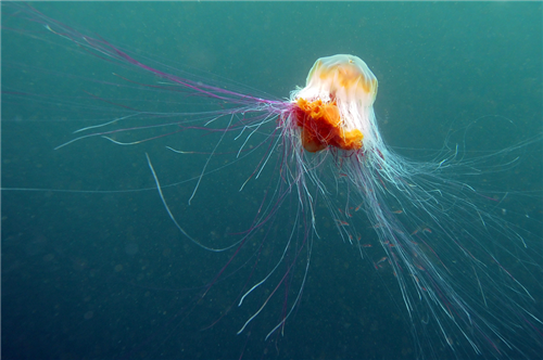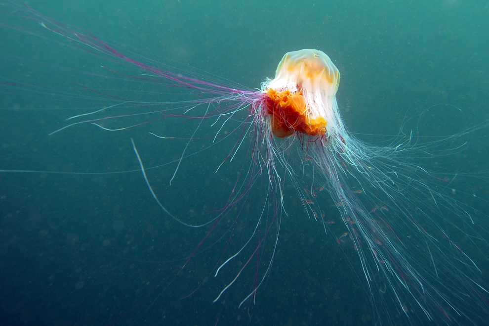 សត្វ jellyfish នេះកំពុងតែហែលនៅក្នុងទឹកសមុទ្រនៅប្រជុំកោះ Farne ប្រទេសអង់គ្លេស