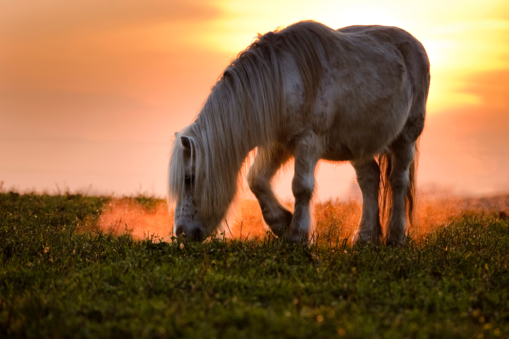 សេះនេះកំពុងតែស៊ីស្មៅនៅវេលាថ្លៃរៀបលិចនៅឯ Lausanne ប្រទេសស្វីស។
