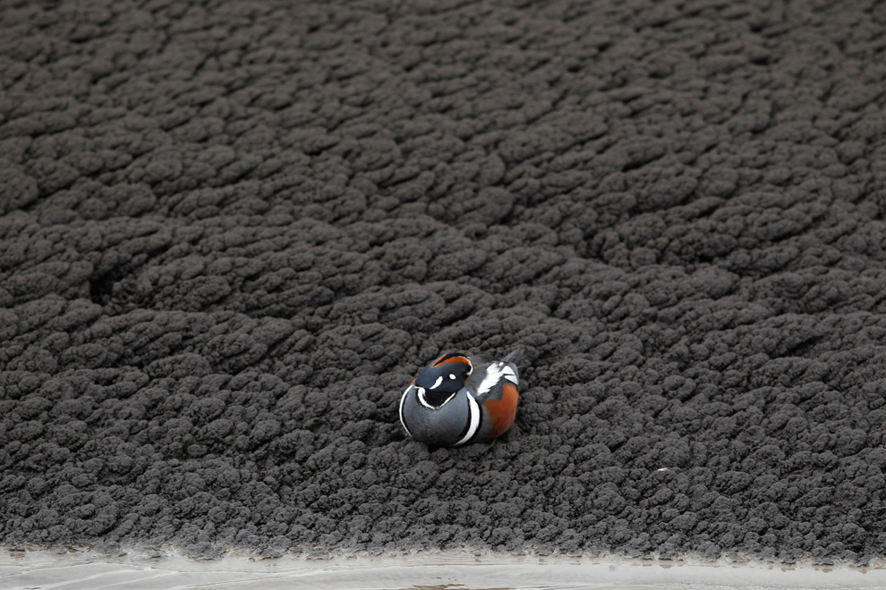 សត្វទានេះកំពុងតែសំរាកកាយនៅលើកំអែរភ្នំភ្លើងដែលបានត្រជាក់ និងបង្កឡើងដោយភ្នំ