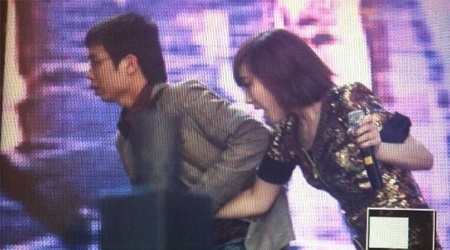 3) បុរសចំលែកមុខ ទាញដៃTaeyeon ចុះពីលើឆាក