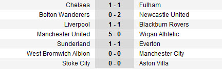 លទ្ធផលការប្រកួតបាល់ទាត់ English Premier League