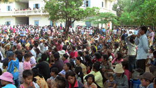 បានមូលមី កកកុញនៅក្នុងបរិវេណពហុកីឡាដ្ឋានជាតិកម្ពុជា ដើម្បីចូលរួមគាំទ្រ និង