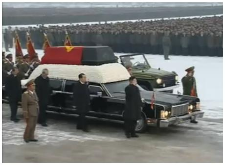 ក្ដារមឈូសសពលោក Kim Jong Il ត្រូវបានដាក់នៅក្នុងរថយន្ដដឹកសពដែលត្រូវបានដង្ហែពី