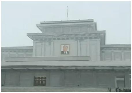 វិមានសក្ការបូជា Kumsusan ទៅកាន់បូជនីយដ្ឋានក្នុងទីលាននៅខាងមុខ។