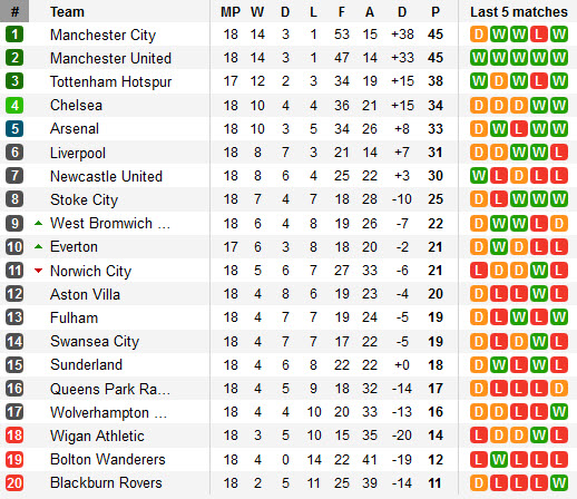 តារាងលំដាប់ពិន្ទុក្របខណ្ឌ English Premier League