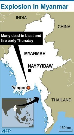 នៅឯឃ្លាំងផ្ទុកថ្នាំពេទ្យមួយនៅក្រុងក្រុង Yangon ។ ក្រោយមក ភ្លើងបានរាលដាលទៅកាន់