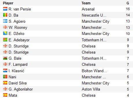 តារាង Top Scorers ក្នុងក្របខណ្ឌបាល់ទាត់ English Premier League