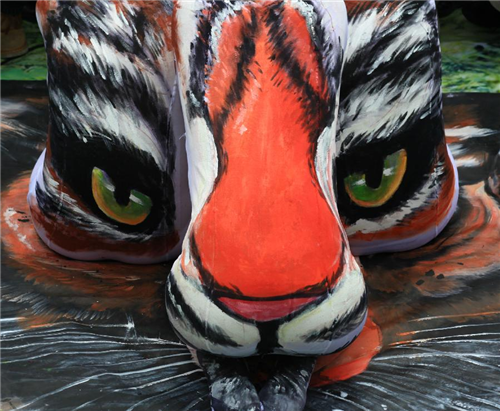 ដែលបានគូរនៅលើដងខ្លួនរបស់តារាមូដែលចំនួន៣រូបដែលបង្ហាញអំពីរូបភាពនៃសត្វខ្លា។