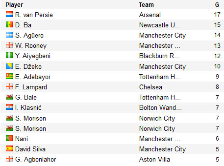 តារាង Top Scorers ក្នុងក្របខណ្ឌបាល់ទាត់ English Premier League