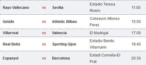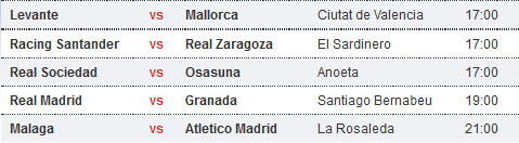 តារាងការប្រកួតបាល់ទាត់អេស្បាញ La Liga ថ្ងៃសៅរ ទី៧ នឹងថ្ងៃអាទិត្យ ទី៨ ខែមករា ឆ្នាំ២០១២