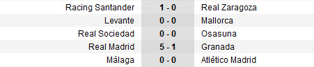 លទ្ធផលការប្រកួតបាល់ទាត់អេស្បាញ La Liga ថ្ងៃសៅរ ទី៧ នឹងអាទិត្យ ទី៨ ខែមករា ឆ្នាំ២០១២