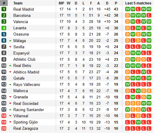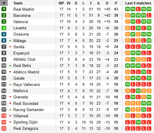តារាងលំដាប់ពិន្ទុក្របខណ្ឌ Spain La Liga