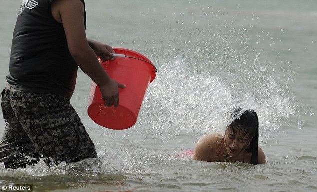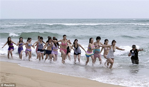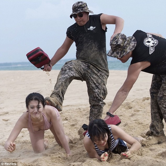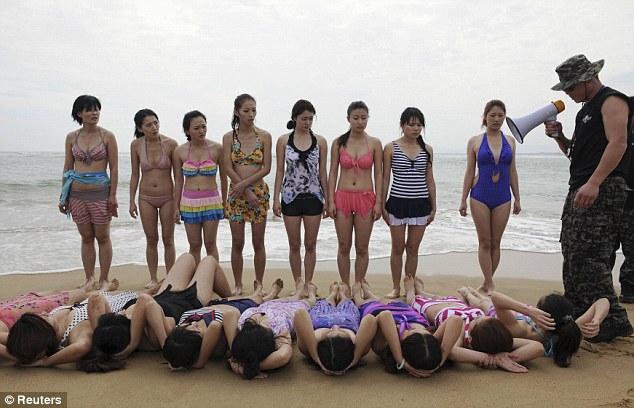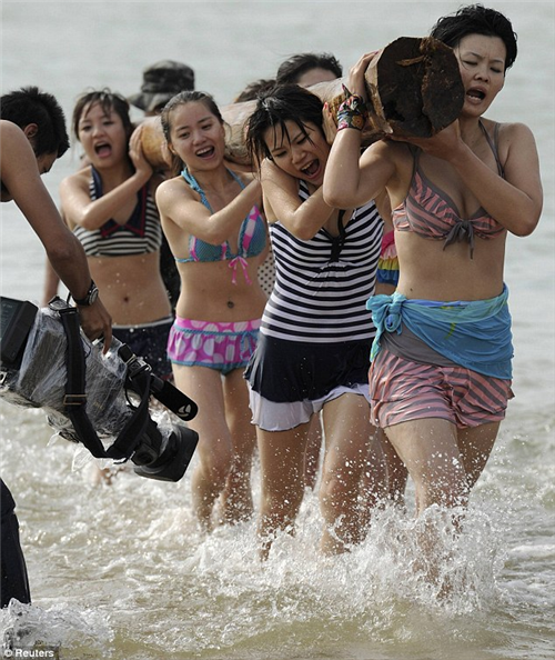 ហែលទឹក លីឈើ និងដេកនៅលើឆ្មេរ ដោយតម្រូវអោយនារីជាច្រើននាក់ដើរ