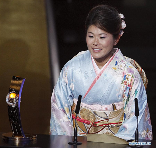 កីឡាការនី Homare Sawa កីឡាករបាល់ទាត់ស្រ្តីរបស់ប្រទេសជប៉ុនទទួលបានពានរង្វាន់