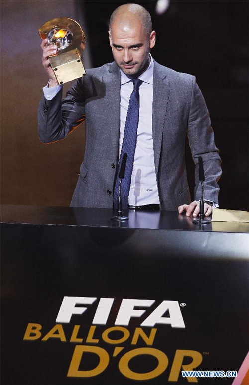 គ្រូបង្វឹកក្លឹបបាល់ទាត់ Barcelona Pep Guardiola ទទួលបានពានរង្វាន់គ្រូបង្វឹកក្រុមបាល់
