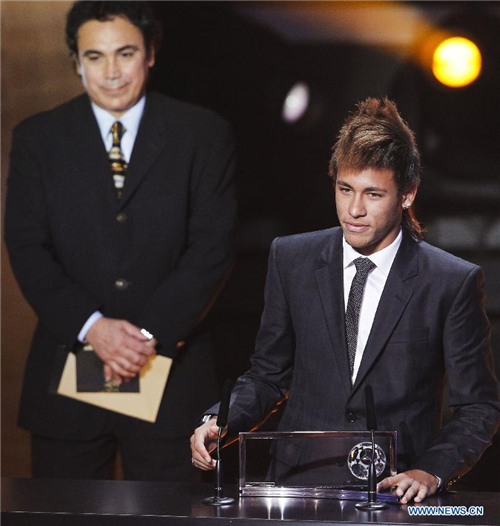 កីឡាករ Neymar សញ្ញាតិប្រេស៊ីលទទួលបានពានរង្វាន់កីឡាករដែលរកគ្រាប់បាល់បាន