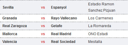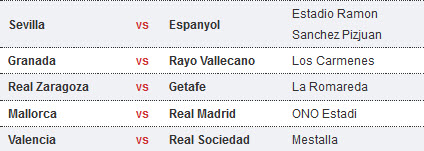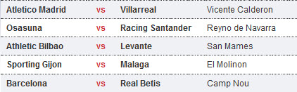 តារាងការប្រកួតបាល់ទាត់ Spain La Liga ថ្ងៃសៅរ ទី១៤ និងថ្ងៃអាទិត្យ ទី១៥ ខែមករា ឆ្នាំ២០១២