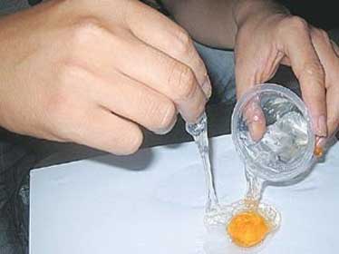 នៅពេលយកធាតុរាវក្រហមនោះដាក់ចូលទៅក្នុងធាតុរាវព័ណ៌ ស អ្នកនឹងបានស៊ុតក្លែង