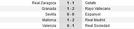 លទ្ធផលការប្រកួតបាល់ទាត់អេស្បាញ La Liga