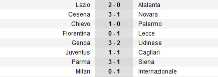 លទ្ធផលការប្រកួតបាល់ទាត់អ៊ីតាលី Serie A ថ្ងៃសៅរ៍ ទី១៤ និងថ្ងៃអាទិត្យ ទី៨១៥ ខែមករា ឆ្នាំ២០១២