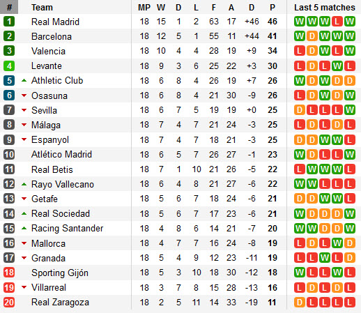 តារាងលំដាប់ពិន្ទុក្របខណ្ឌ Spain La Liga