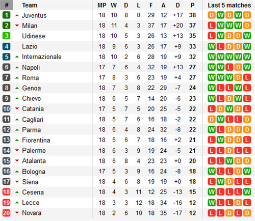 តារាងលំដាប់ពិន្ទុក្របខណ្ឌអ៊ីតាលី Serie A