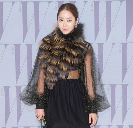 ស្រីស្អាតកូរ៉េខាងត្បូងប្រើអាវរោមសត្វបង្អួតខ្លួន