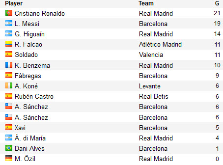 តារាង Top Scorers ក្នុងក្របខណ្ឌបាល់ទាត់ Spain La Liga