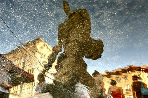 នេះគឺជារូបភាពចំាងឆ្លុះ នៅតាមផ្លូវ ដែកលោក Ira Fox បានថតពីផ្ទៃទឹក មើលទៅ