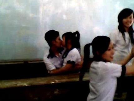 និងសិស្សប្រុសមួយគូ បានអង្គុយលើភ្លៅគ្នា ឱបថើប និងស្ទាបអង្អែលគ្នានៅចំពោះមុខមិត្ត