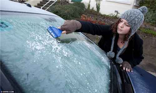 Ellie Connolly អាយុ ២៧ឆ្នាំ កំពុងសំអាតព្រិលនៅលើកញ្ចក់រថយន្ដ នៅក្រុង Plymouth, Devon