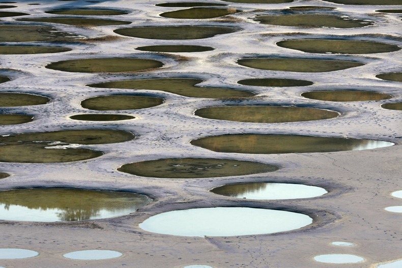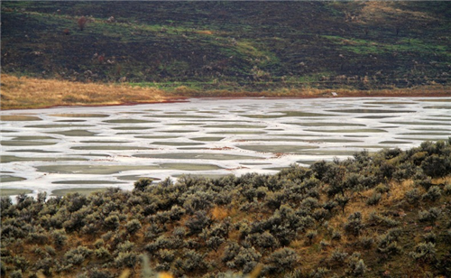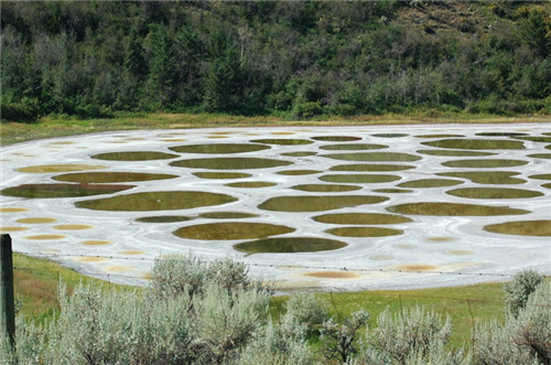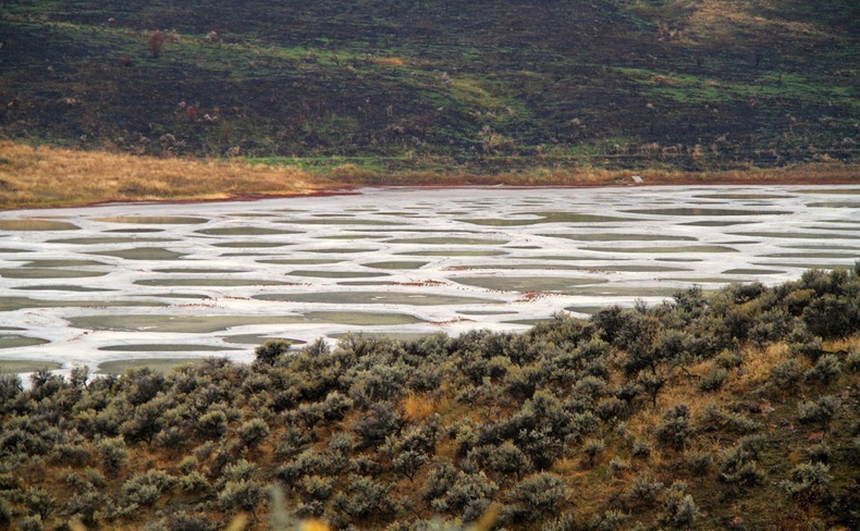 បឹងចំលែកដែលមានស្នាមអុចៗ មានទីតំាងនៅ ជិតទីក្រុង Osoyoos នៅ