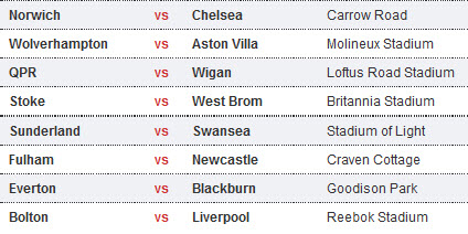 តារាងការប្រកួតបាល់ទាត់ English Premier League ថ្ងៃសៅរ ទី២១ និងថ្ងៃអាទិត្យ ទី២២ ខែមករា ឆ្នាំ២០១២