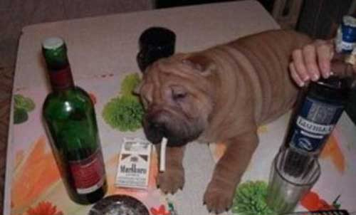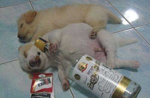 អោយអស់សំនើច។ កូនឆ្កែនីមួយៗមើលទៅពិតជាធ្ងន់ធ្ងរហើយមួយៗ ព្រោះផឹកជ្រុល