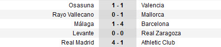 លទ្ធផលការប្រកួតបាល់ទាត់អេស្បាញ La Liga