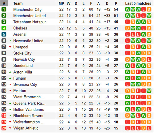 តារាងលំដាប់ពិន្ទុក្របខណ្ឌ English Premier League