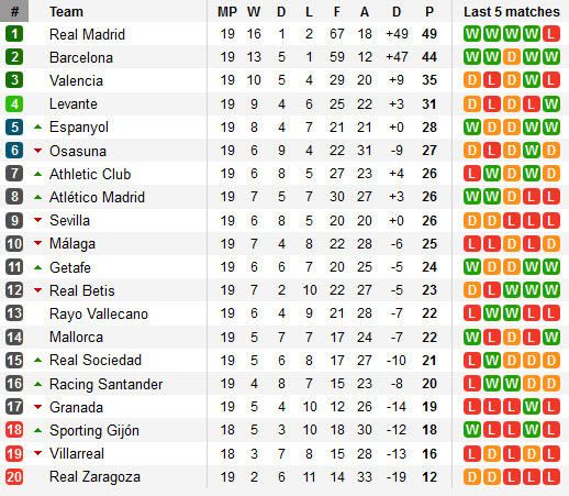 តារាងលំដាប់ពិន្ទុក្របខណ្ឌ Spain La Liga