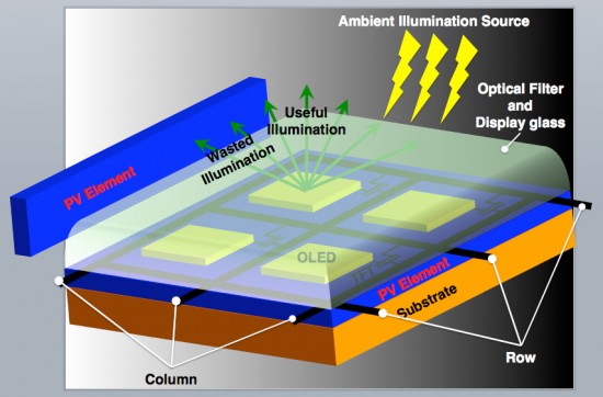 បន្ទះដែលបំលែងថាមពលពីពន្លឺព្រះអាទិត្យ បំពាក់នៅក្រោមអេក្រង់ OLED របស់ទូរស័ព្ទ