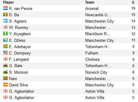តារាង Top Scorers ក្នុងក្របខណ្ឌបាល់ទាត់ English Premier League