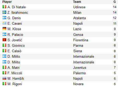 តារាង Top Scorers ក្នុងក្របខណ្ឌបាល់ទាត់អ៊ីតាលី Serie A