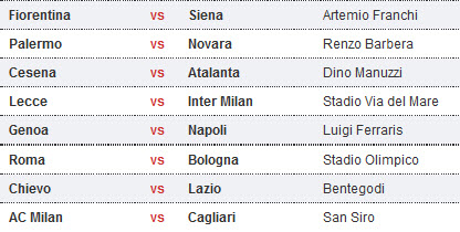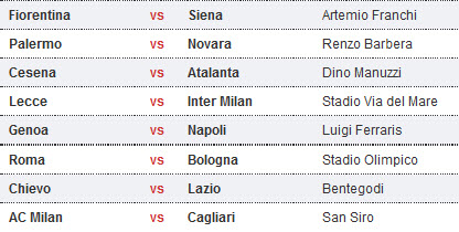 តារាងការប្រកួតបាល់ទាត់អ៊ីតាលី Serie A ថ្ងៃសៅរ ទី២៨ និងថ្ងៃអាទិត្យ ទី២៩ ខែមករា ឆ្នាំ២០១២
