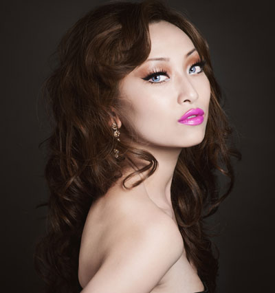 ព័ណ៌ស៊ីជំពូក្រាស រួមផ្សំជាមួយព័ណ៌ស្លាទុំសម្រាប់ត្របកភ្នែកខាងលើ ព្រមទាំងម៉ូដសក់