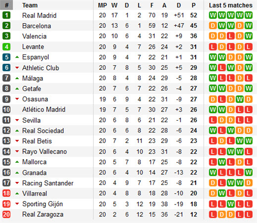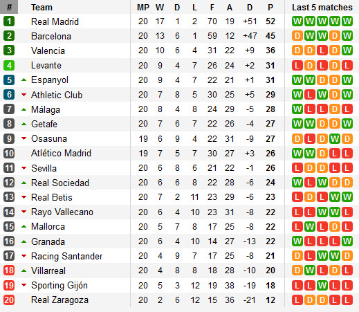 តារាងលំដាប់ពិន្ទុក្របខណ្ឌ Spain La Liga