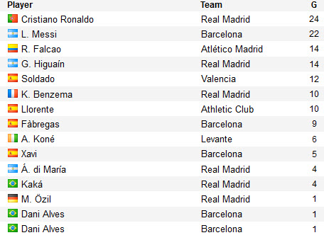 តារាង Top Scorers ក្នុងក្របខណ្ឌបាល់ទាត់ Spain La Liga