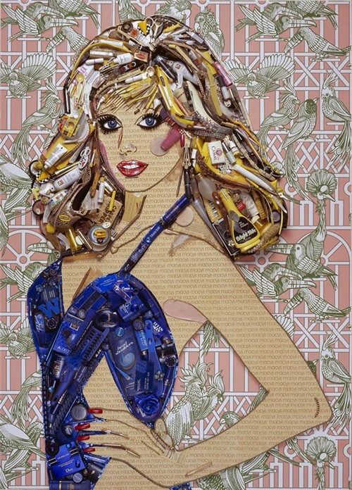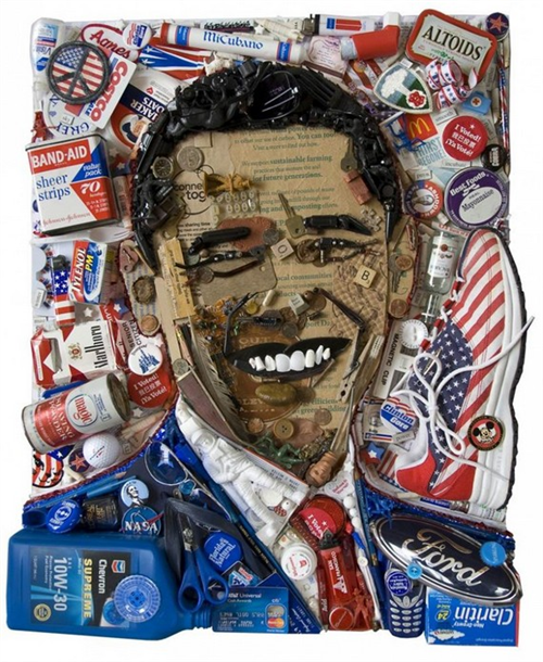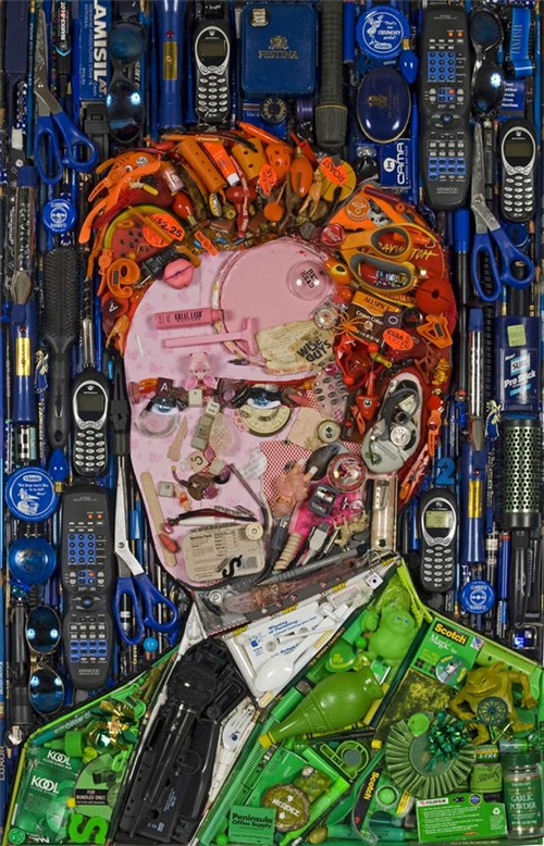 សិល្បៈបង្កើតរូបភាពមនុស្សល្បីៗ ផ្សំឡើងពីសំរាម